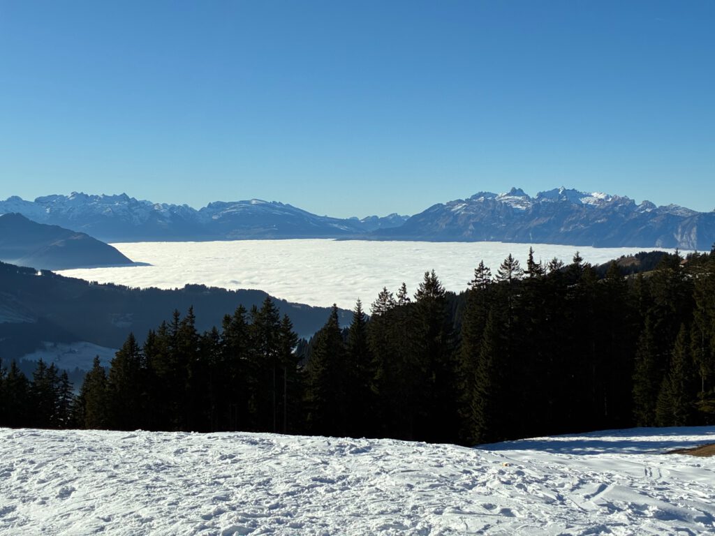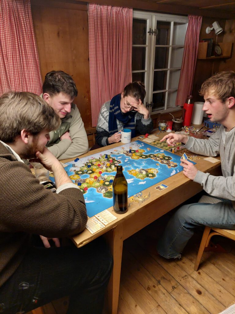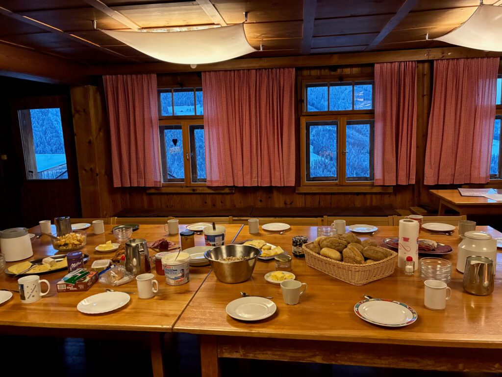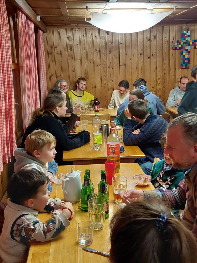 Mit 35 Personen waren wir über Sylvester im Haus Marienrh in Vorarlberg. Die Inversionswetterlage bescherte uns oben auf der Selbstversorgerhütte wunderbaren Sonnenschein. Schnee gab es nicht allzu viel, die Talabfahrt war geöffnet, auch konnten einige Kinder das Skifahren erlernen. Wir hatten sooo gute Köche dabei.