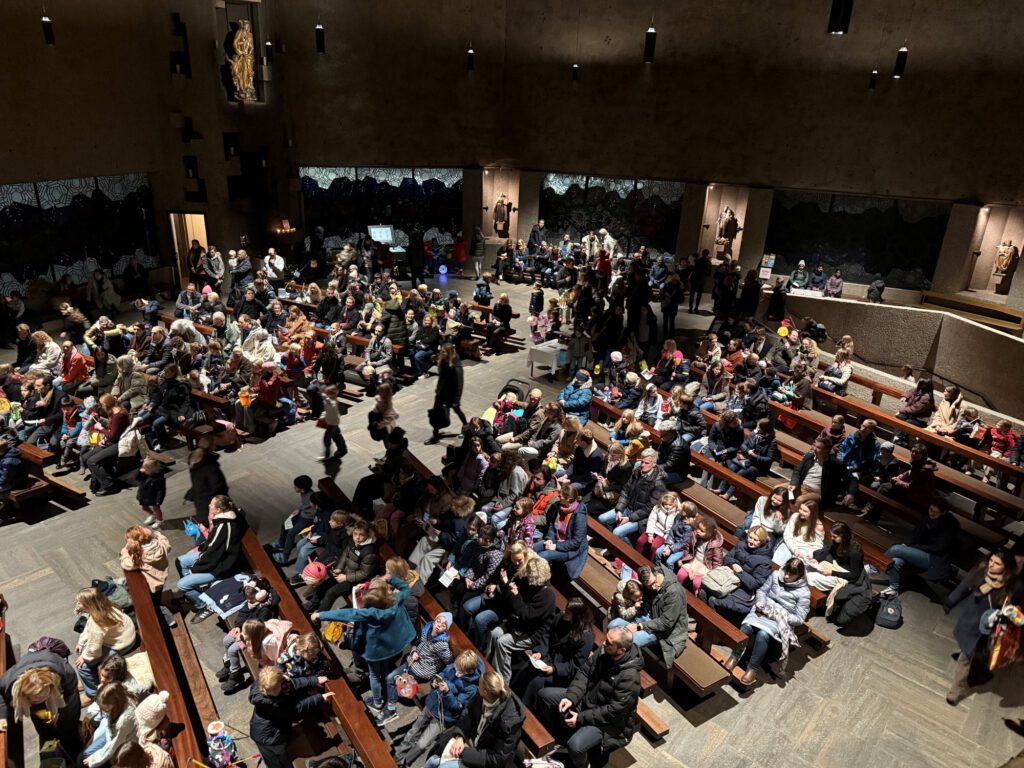 Mit Pferd, Bläsern, Minis und vielen Kindern und Eltern ging es von der Engelbert-Humperdinck-Schule nach St. Ignatius.