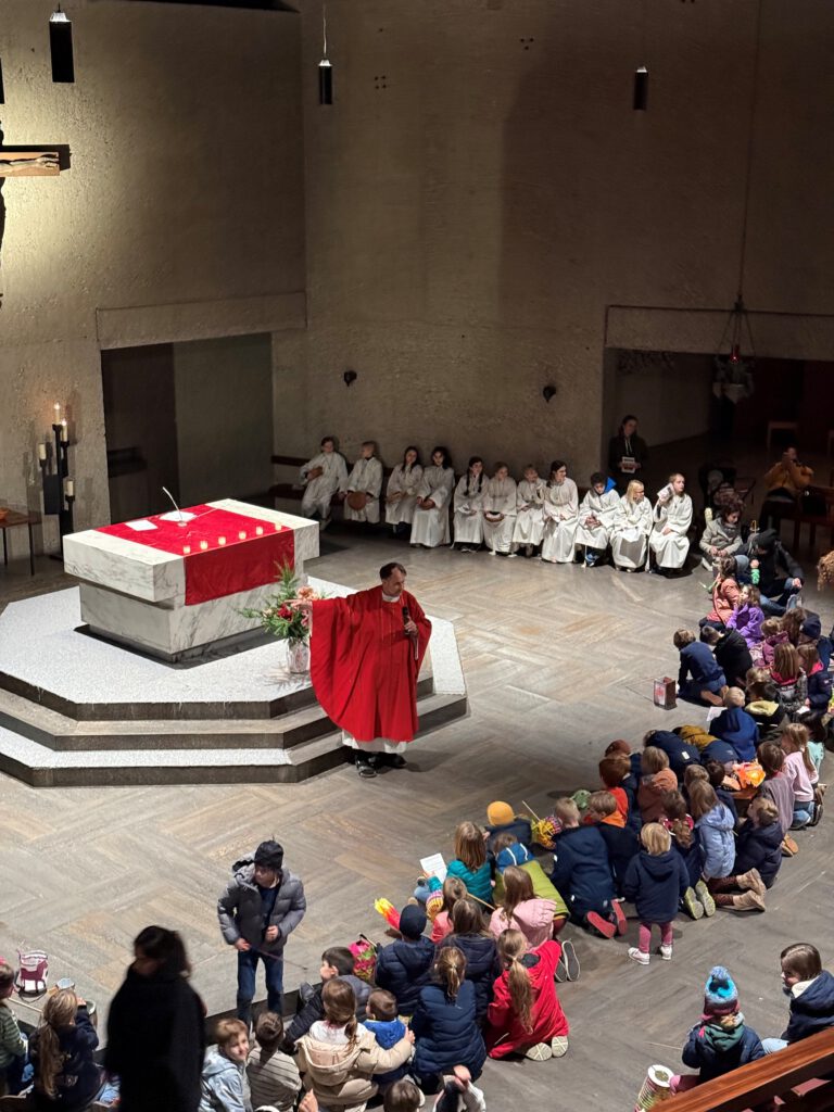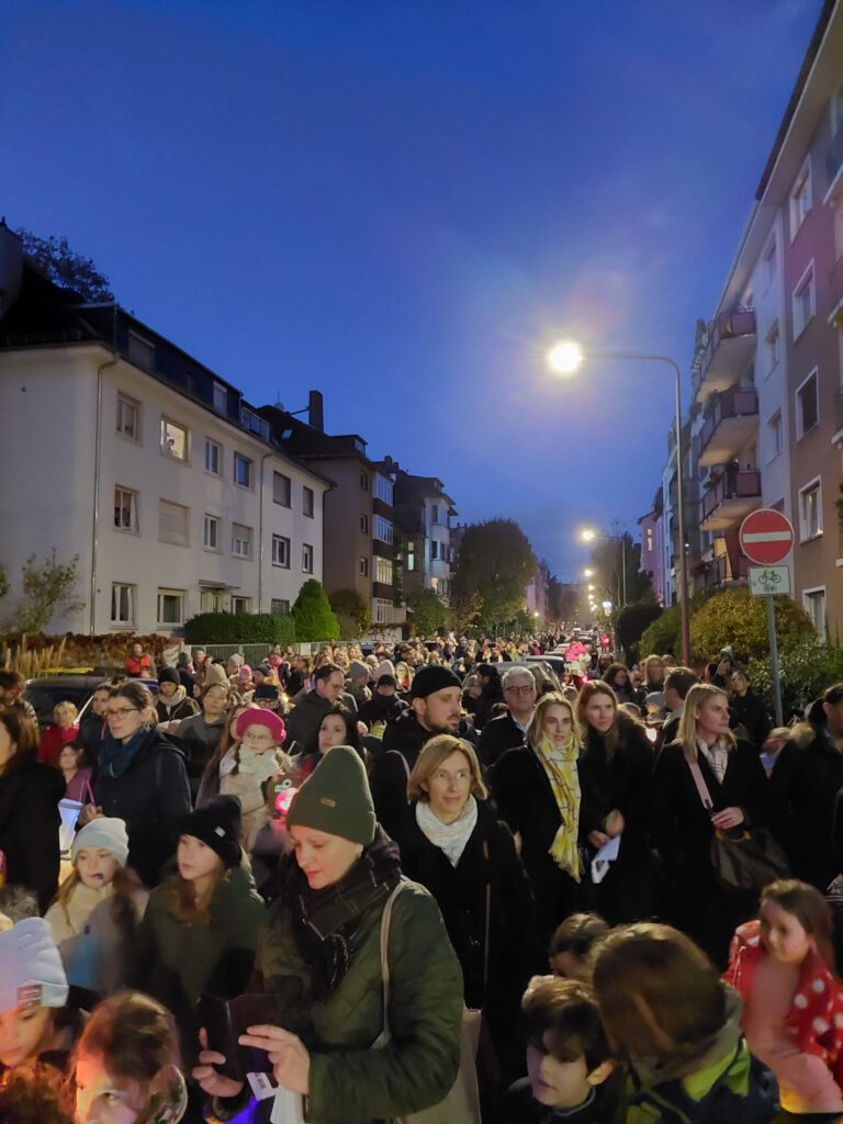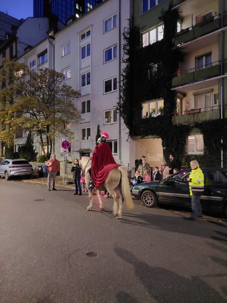 Angeführt von St. Martin auf einem Pferd (O-Ton: das ist ja viel größer als letztes Jahr) und begleitet von vier Bläser der Frankfurter Bläserschule ging es nach St. Ignatius. In der Kirche wurden noch Lieder gesungen und gebetet.