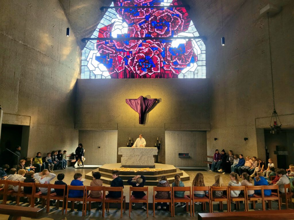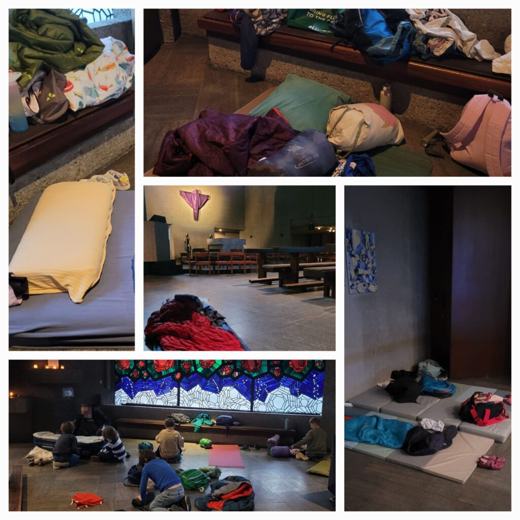 Von Freitag 21.03. bis Samstag 22.03. erlebten die Erstkommunionkinder etwas ganz Besonderes: Eine Übernachtung in der Kirche. Es gab ein Abendessen und ein buntes Abendprogramm mit Gruppenspielen und Liedern. Danach versammelten sich alle um den Altar in der dunklen Kirche, die von nur von vielen Kerzen erleuchtet und mit Taizé Liedern beschallt war, um eine biblische Geschichte zu hören.