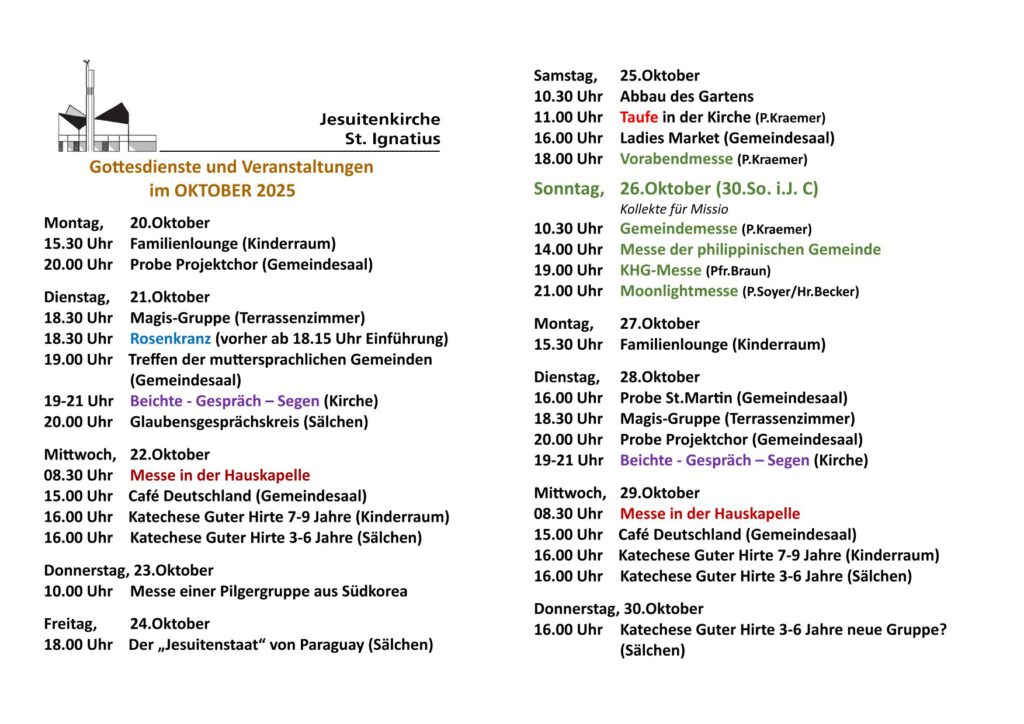 Gottesdienste und Veranstaltungen im Oktober 2025